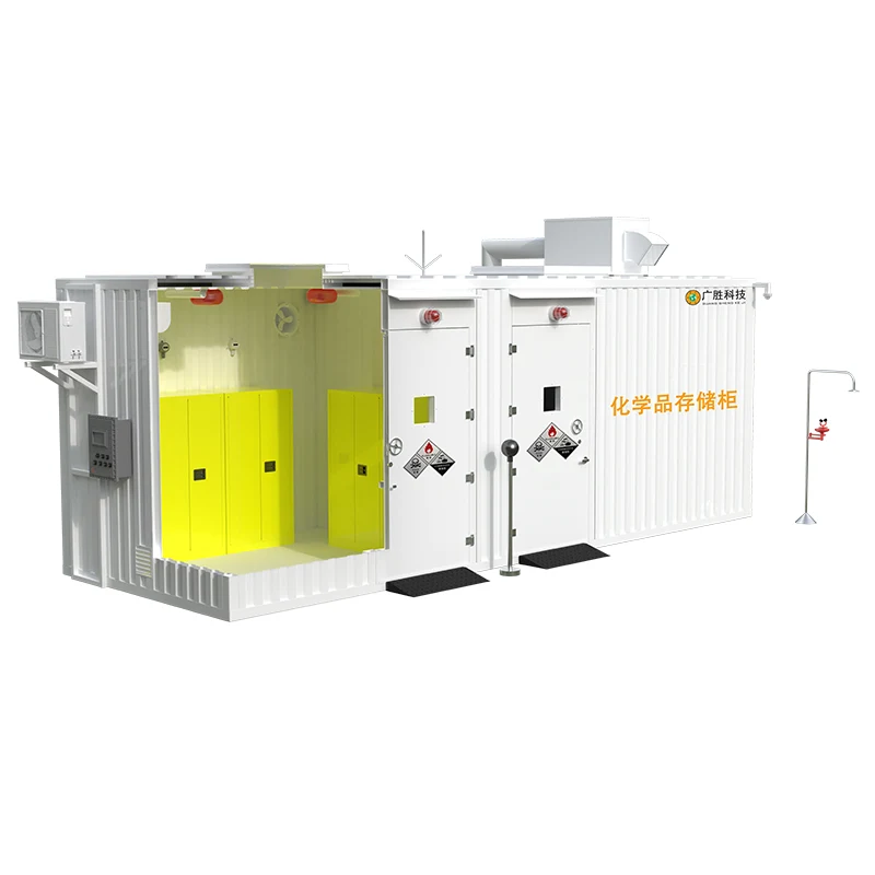 Struktura omare za začasno shranjevanje na prostem vključuje škatlo, sistem za upravljanje programske opreme, platformo za upravljanje oblaka IoT, sistem za zaščito pred strelo in protistatično ozemljitev, sistem za spremljanje visoke ločljivosti, odporen proti eksplozijam, sistem napajanja, odporen proti eksplozijam, sistem za konstantno temperaturo in vlažnost, sistem za osvetlitev, odporen proti eksplozijam, avtonomni nadzorni in alarmni sistem, sistem za inteligentno upravljanje požara, protikorozijski sistem, sistem za notranjo klasifikacijo in shranjevanje, prezračevanje in odvod sistem, sistem za odpravo uhajanja, sistem za čiščenje izpušnih plinov, sistem za osebno zaščito, sistem za rezervo čistilnih sredstev, avtomatski sistem za razbremenitev tlaka, zasilna prha in druge sistemske enote. Uporabniki lahko izberejo funkcionalni sistem v skladu s tabelo konfiguracijskih zahtev, ki jo zagotavlja Guangsheng Technology.
